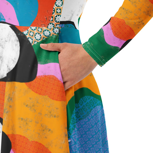 Oul-Shi / Say Something Colorful Print Long Sleeve Midi Dress